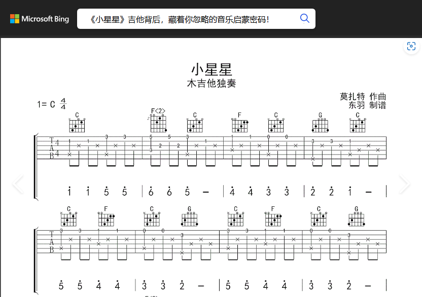 《小星星》吉他简谱初学版:入门的钥匙